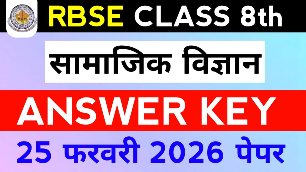 Rajasthan Board of Secondary Education द्वारा आयोजित कक्षा 8वीं सामाजिक विज्ञान (Social Science) की परीक्षा 25 फरवरी 2026 को सफलतापूर्वक संपन्न हुई। परीक्षा के बाद छात्रों और अभिभावकों में सबसे अधिक चर्चा उत्तर कुंजी (Answer Key) को लेकर होती है, क्योंकि इसी के माध्यम से छात्र अपने उत्तरों का मिलान कर संभावित अंकों का अनुमान … Read more